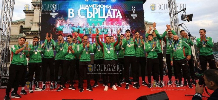 После приземления утром в аэропорту «Васил Левски» в Софии спортсменов встречал почетный караул, они были украшены лавровыми венками и белыми розами и прошли по красной дорожке. Кульминацией праздника стал второй день: Болгарская федерация волейбола и мэрия Софии организовали масштабную встречу сборной на площади Святого Александра Невского, которая оказалась довольно узкой. Тысячи людей пришли поздравить наших волейболистов.